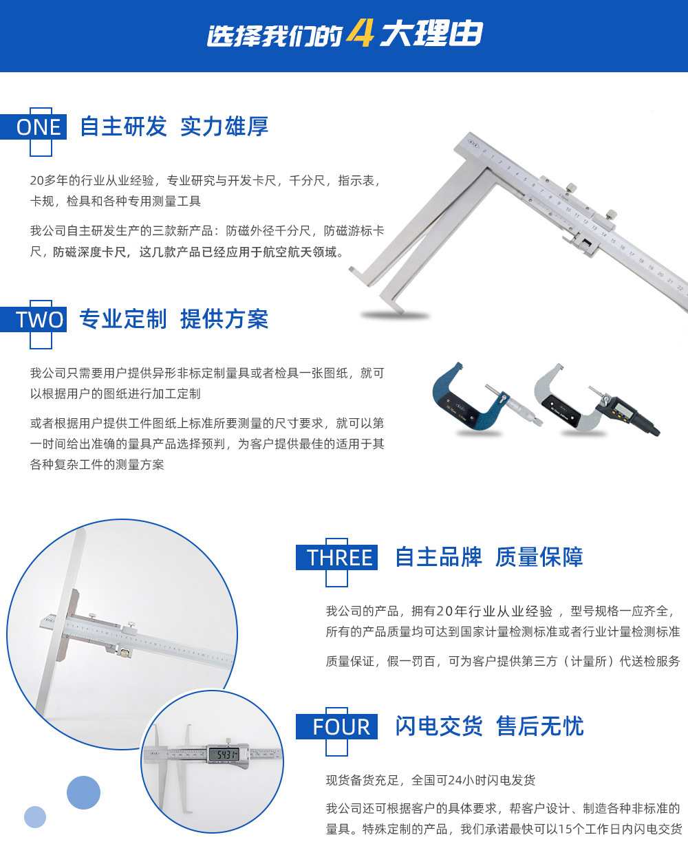 天津桂量量具刃具有限公司,擁有20年的行業(yè)從業(yè)經(jīng)驗(yàn),主要生產(chǎn)游標(biāo)卡尺卡尺,數(shù)顯卡尺,帶表卡尺,各種千分尺,百分表,內(nèi)徑百分表,高度游標(biāo)卡尺,深度卡尺,卡規(guī),檢具和各種測(cè)量工具,是一家集設(shè)計(jì)生產(chǎn),銷售為一體的企業(yè)。 我公司開發(fā)生產(chǎn)了三款新產(chǎn)品:防磁外徑千分尺,防磁游標(biāo)卡尺,防磁深度卡尺,這幾…